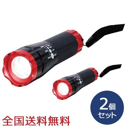 ツイストズーム付き3W LEDトーチ ハンディライト 防災 アウトドア 懐中電灯 レッド&ブラック お得な2個セット