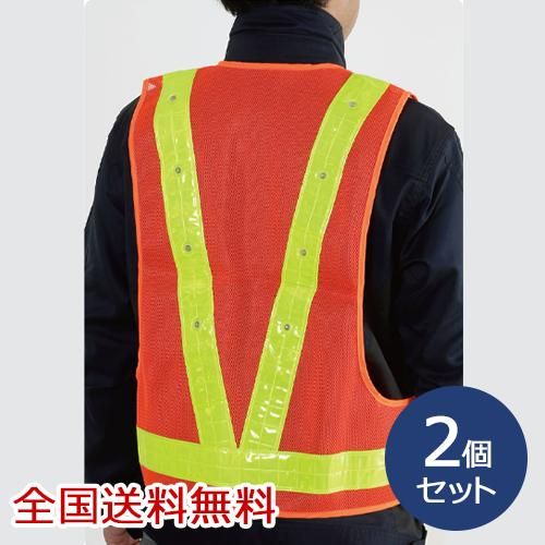 LED付き 蛍光ベスト オレンジ 安全ベルト 夜間作業 交通パトロール 防犯パトロール お得な2個セット