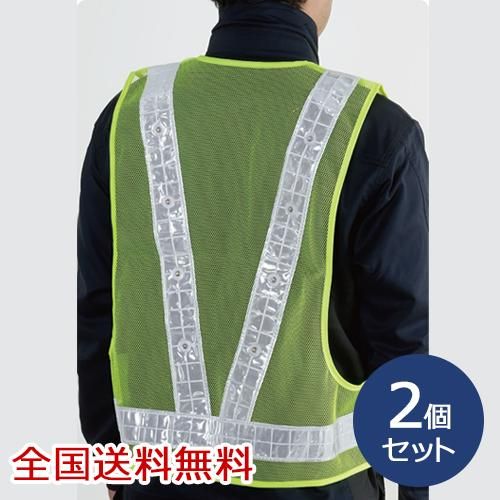 LED付き 蛍光ベスト イエロー 安全ベルト 夜間作業 交通パトロール 防犯パトロール お得な2個セット