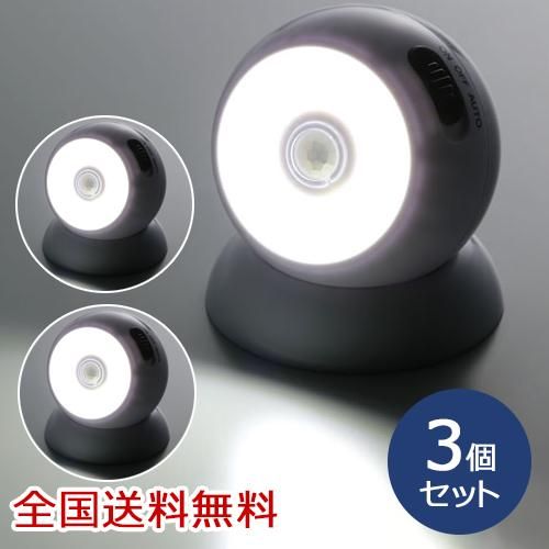 AUTO:人感センサーと明暗センサーで動作。暗い場所で自動点灯し約30秒で消灯します。
