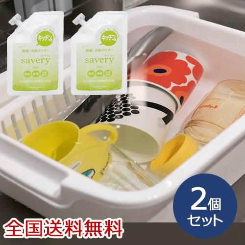 キッチン用 除菌・消臭パウダー savery(セブリィ) 漬け置き洗い 食器洗浄 野菜洗浄 お得な2個セット