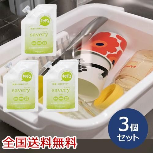 キッチン用 除菌・消臭パウダー savery(セブリィ) 漬け置き洗い 食器洗浄 野菜洗浄 お得な3個セット