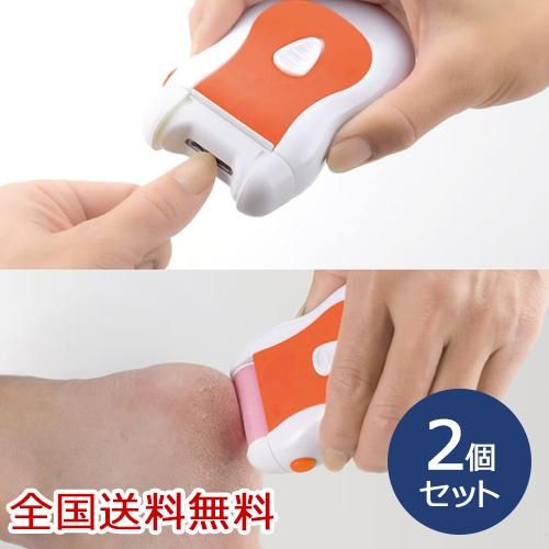 • 電動爪削り&かかとローラー ネイルケア 爪切り フットケア かかと削り 乾電池 お得な2個セット