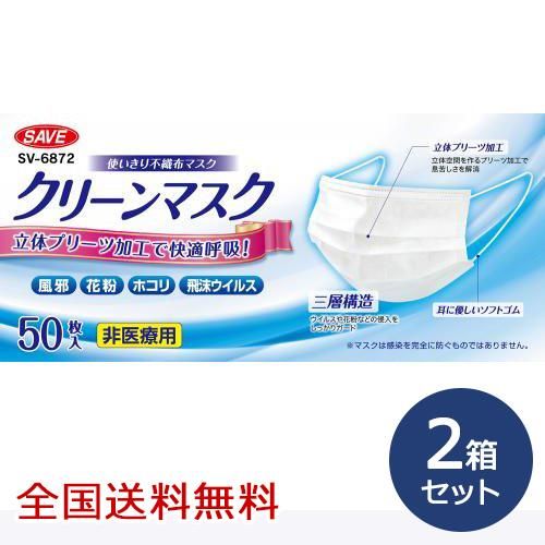クリーンマスク 50枚入 マスク 不織布 使い捨て 花粉 ホコリ お得な2個セット