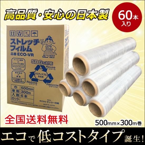 • ストレッチフィルム VR 500mm×300m巻 日本製 6巻(6本)入 10箱セット 合計60巻 13μ(13ミクロン)相当品 エコ仕様 全国送料無料